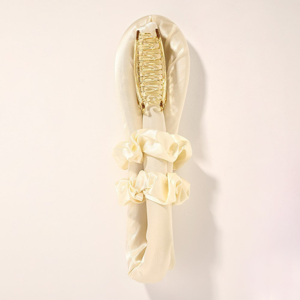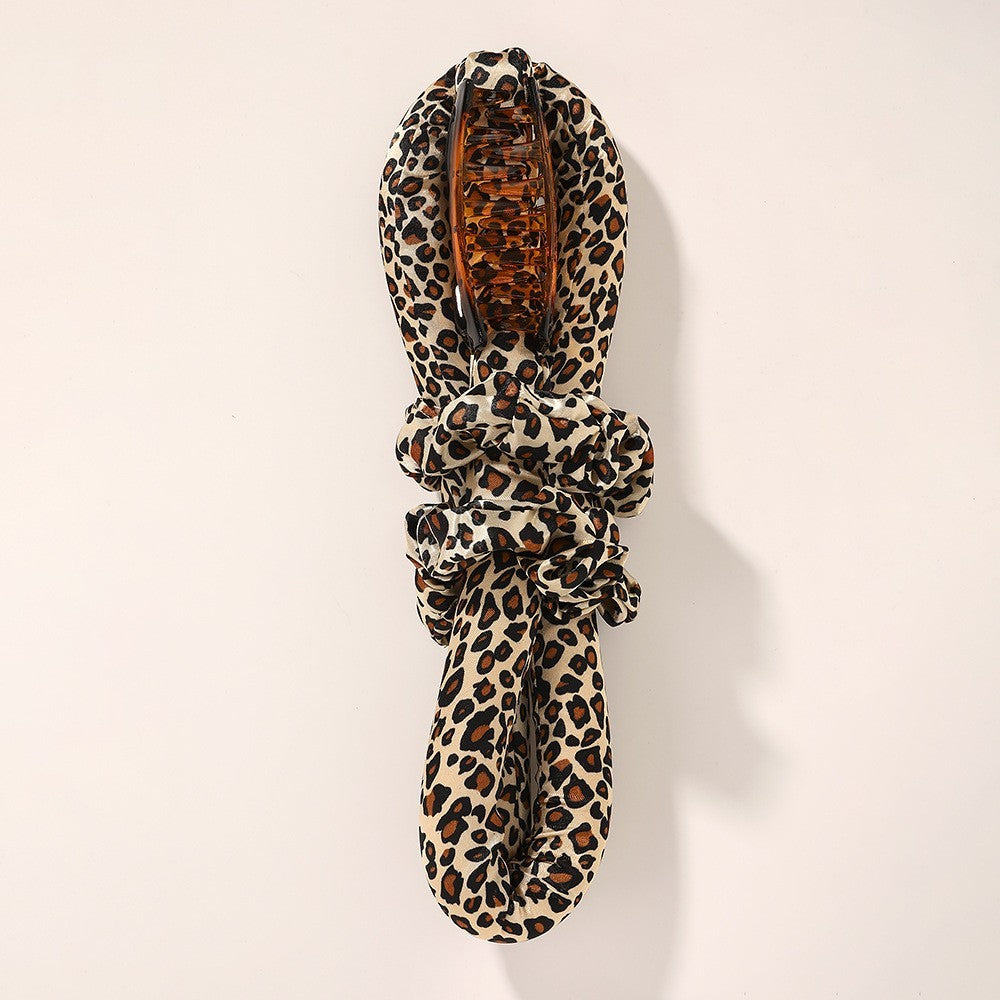 Farbauswahl: Rosa (Stab, 2 Haargummis, 1 Haarspange), Blau (Stab, 2 Haargummis, 1 Haarspange), Champagner (Stab, 2 Haargummis, 1 Haarspange), Schwarz (Stab, 2 Haargummis, 1 Haarspange), Leopardenmuster (Stab, 2 Haargummis, 1 Haarspange)